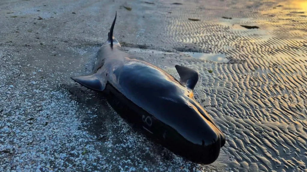Six pilot whales are already dead — and 15 more are fighting for their lives after washing up on Farewell Spit.